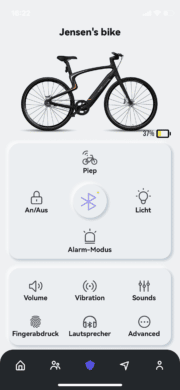 Natürlich bietet das junge Startup passend zu seinem stylischen E-Bike auch eine maßgeschneiderte App an. Die Urtopia-App, die es sowohl für Android- als auch iOS-Geräte gibt, zeigt sich in der Praxis überaus facettenreich. So dient sie nicht nur der Einrichtung des Fahrrads inklusive Speicherung des Fingerabdrucks. Obendrein lässt sich Grundsätzliches wie beispielsweise Lautstärke der Systemsounds festlegen.