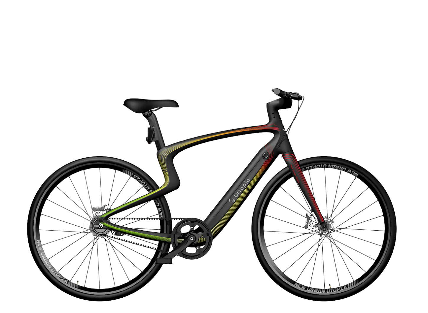 Als Premium-E-Bike lässt sich natürlich auch das Urtopia nicht lumpen und kommt mit einem Riemenantrieb bestehend aus Carbon daher. Dieser treibt die beiden Räder des Modells Kenda Kwest an. Selbige sind für ihre Pannensicherheit berühmt berüchtigt. Nicht nur die Beschleunigung, sondern auch der Bremsweg des ultraleichten E-Bikes kann sich sehen lassen. Dafür sorgen die beiden Hydraulik-Scheibenbremsen, die das junge Unternehmen sowohl Vor- als auch Hinterrad spendiert.