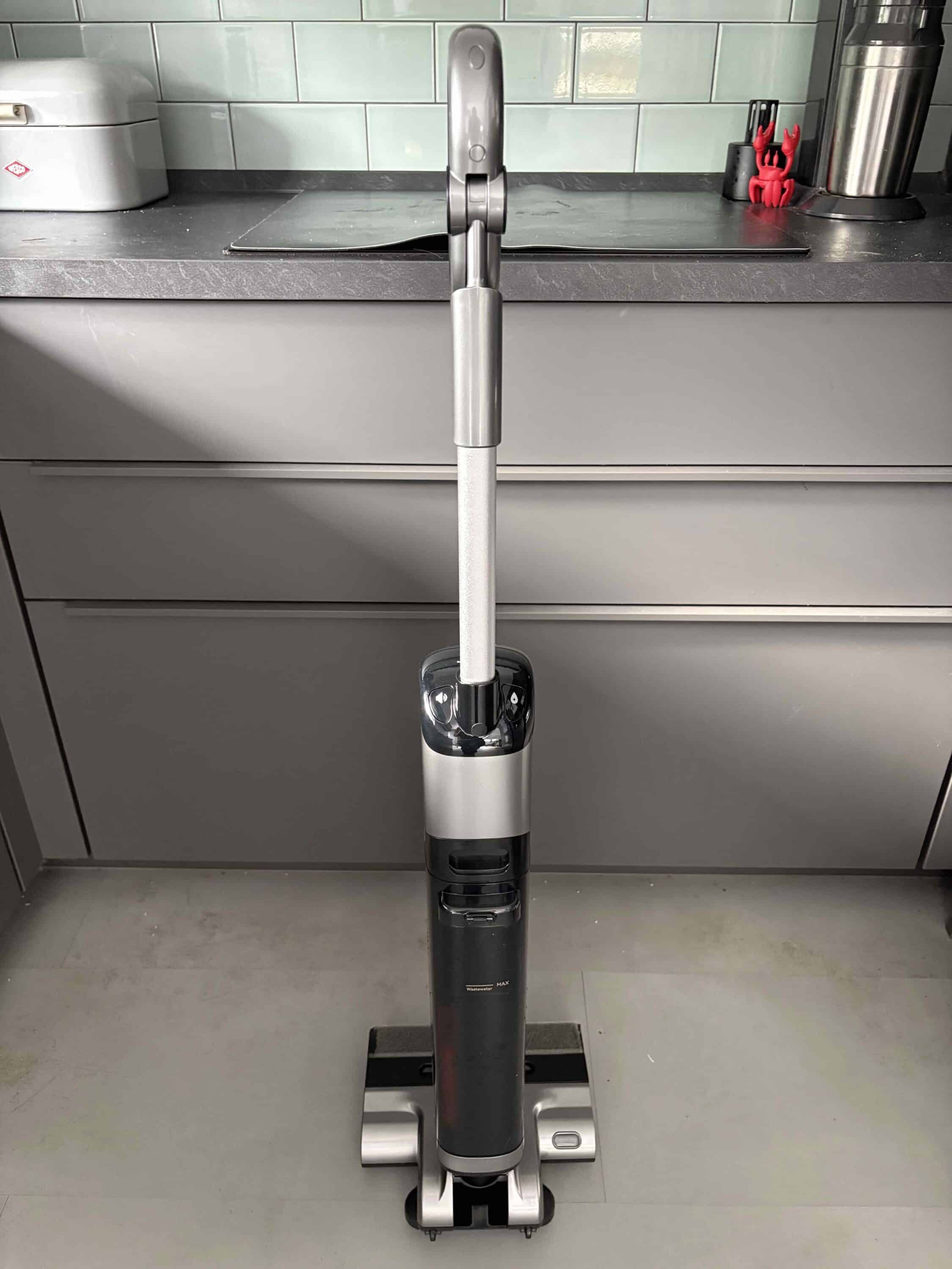 Zumindest in der Theorie. In der Praxis gestaltet sich das Ganze nämlich etwas holprig. Im Test blieb ich nämlich recht häufig an der kleinen Kante hängen. Wenn das Ganze aber funktioniert, hat es einen entscheidenden Vorteil. Da man den Wischsauger nicht anheben muss, bleibt nämlich auch keine hässliche Pfütze auf dem Boden zurück.