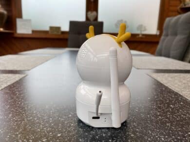 Der Vacos Baby Monitor bietet die üblichen Features wie Alarmton bei Bewegung und Geräuschen, sowie die Walkie-Talkie Funktion, sodass man auch über das Display eigene Töne bei der Kamera ausgeben kann. Der Alarmton ist wirklich penetrant und wurde auch bei den Amazon-Bewertungen stark kritisiert, da dieser nicht veränderbar ist und man auch auf der leisesten Stufe penetrant geweckt wird. Hier hätte Vacos ruhig etwas Auswahl bieten können. Zusätzlich bietet die Kamera 5 verschiedene Schlaflieder, bei der unserer Meinung nach eine gute Auswahl zustande gekommen ist. Die Schwenkfunktion der Kamera ist ein besonderes Feature, welches nicht ganz üblich in dem Preissegment ist und hier auch hervorragend funktioniert, was uns sehr gut gefällt. Wenn man Aufnahmen speichern möchte, kann man dies bequem über eine SD-Karte tun.