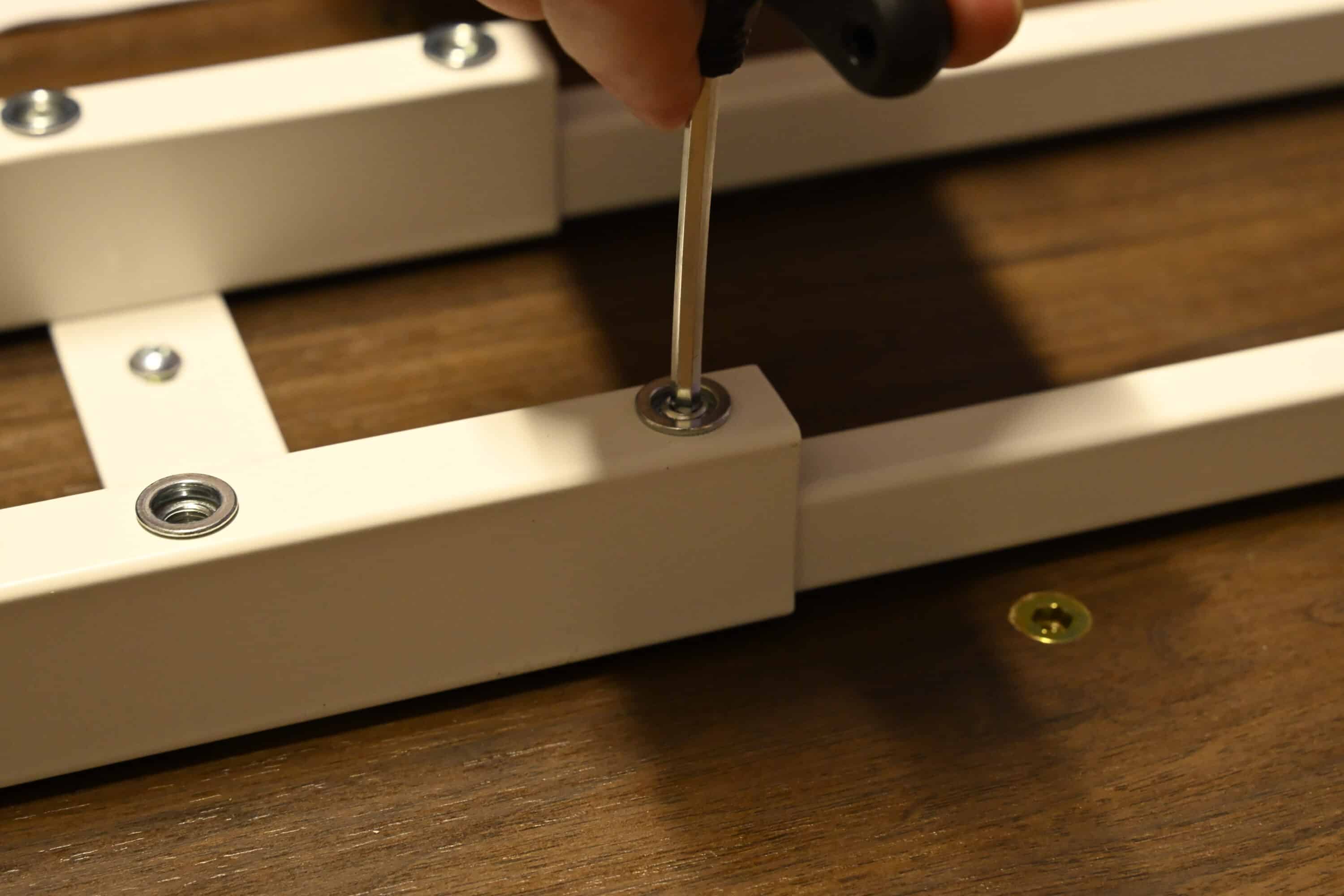 Was hier absolut positiv hervorsticht: Sämtliche Einzelteile des höhenverstellbaren Schreibtischs sind nummeriert, sämtliche Schrauben und Werkzeuge ebenfalls, was die Montage erfreulich simpel gesltatet – auch wenn du dir, gerade bei dieser Größe, idealerweise eine zweite Person zur Unterstützung suchst.