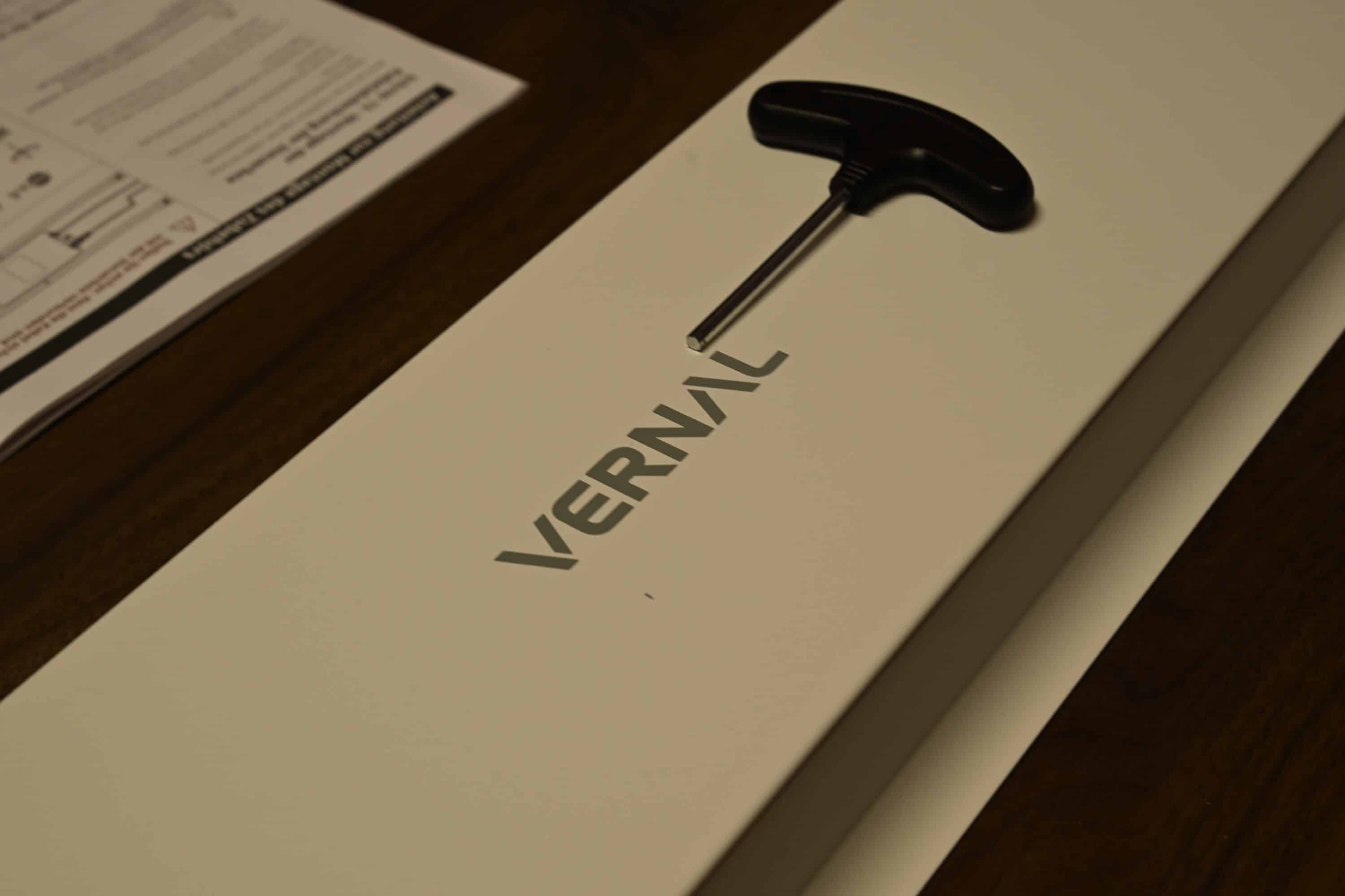 Jetzt geht’s also ans Eingemachte. Schick sieht es aus, der höhenverstellbare Schreibtisch von Vernal. Hochwertig verarbeitet und robust ist er auch. Aber was hat er nun auf dem Kasten?