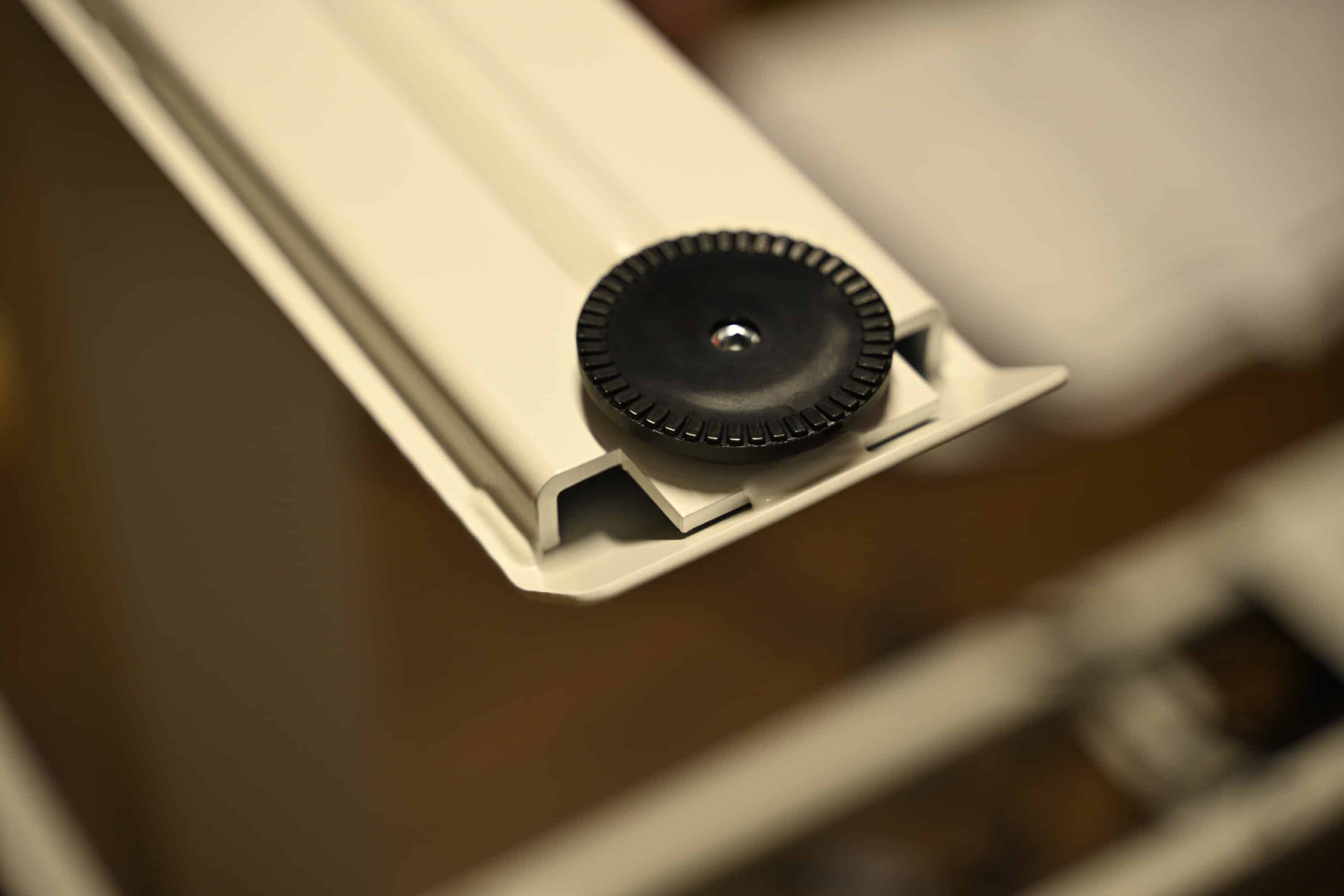 Und dann steht er endlich, der höhenverstellbare Schreibtisch von Vernal. Was direkt ins Auge sticht, ist die unglaubliche Liebe zum Detail. Das beginnt beispielsweise an der Unterseite des Tisches: Hier wird das Netzteil montiert, mit dem die Verstellung der Höhe realisiert wird.