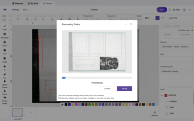 Für die Bedienung der WeCreat Vision nutzt man die hauseigene Software des Herstellers – WeCreat MakeIt. Diese wurde eigens für die Lasergravurmaschine entwickelt und sorgt mit ihrem schlichten und übersichtlichen Design für eine wirklich unkomplizierte Bedienung.