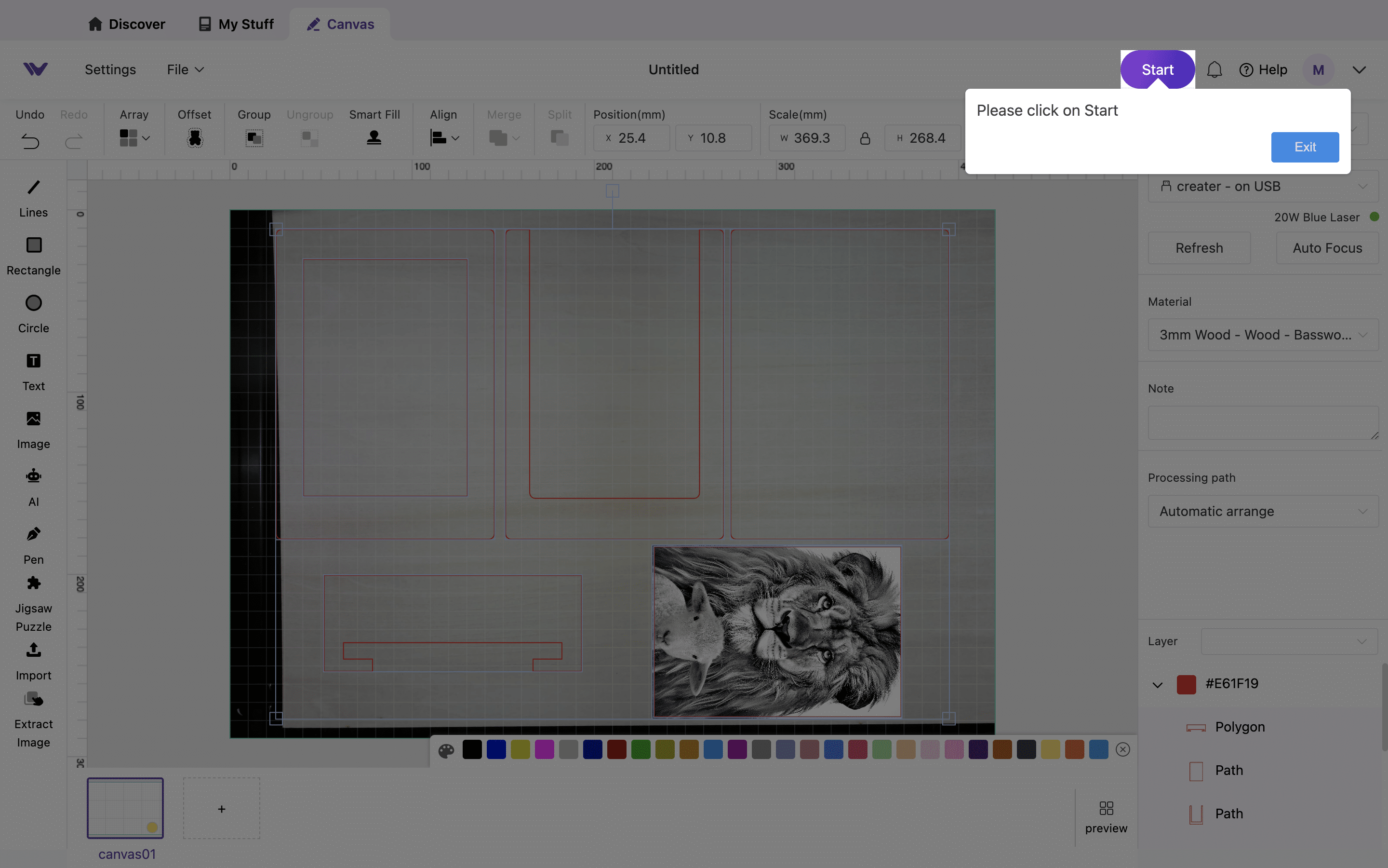Nun lässt sich der Bereich bequem mit verschiedenen Projekten versehen. In der Praxis zahlt sich die Kamera mehr als aus. Hier hat die Lasergravurmaschine die Nase deutlich vor Systemen ohne Kamera.