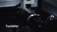 In der Software kann man zwischen drei verschiedenen Modi wählen. Für Bearbeitungen flacher Platten reicht der klassische flache Lasermodus aus. Alternativ gibt es noch einen zylindrischen Modus. Für diesen nutzt man das beiliegende Rotationsmodul und kann beispielsweise Tassen oder Trinkflaschen bearbeiten.