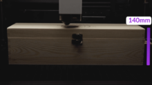 Die Fähigkeit sich automatisch anheben zu können ist in der Welt der Lasergravurmaschinen ein absolutes Novum. Daraus resultiert, dass man sich keine zusätzliche Erhöhung kaufen muss, um größere Untergründe gravieren zu können. Egal, ob dünnes Papier oder dicke Gegenstände bis zu einer Höhe von 140 mm – die Vision passt die Gehäusehöhe immer nach Bedarf automatisch an.