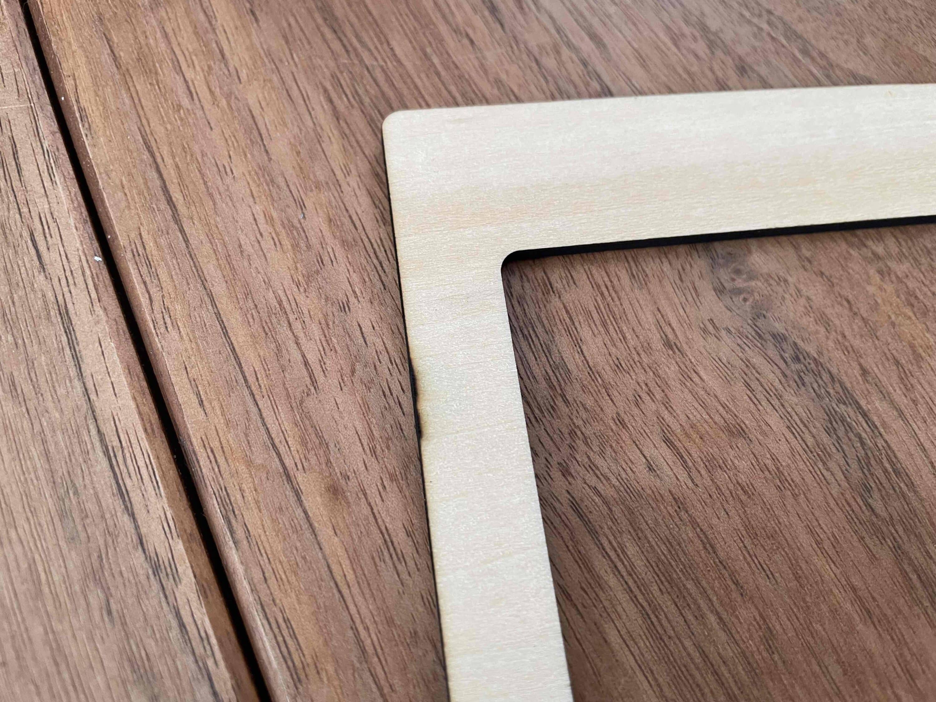 Während die Rauchentwicklung beim Gravieren recht gering war, kam es beim Schneiden schon zu mächtigem Qualm. Dank des leistungsstarken Lüftungssystems konnte ich den Qualm aber problemlos durch mein Fenster abführen. Nach einer knappen halben Stunde hielt ich das hübsche Ergebnis in den Händen. Der Laser arbeitete hier offensichtlich erstaunlich genau und leistete sich nur an einer Stelle einen Patzer. Hier kam es beim Holz zu einer starken Verdunklung.