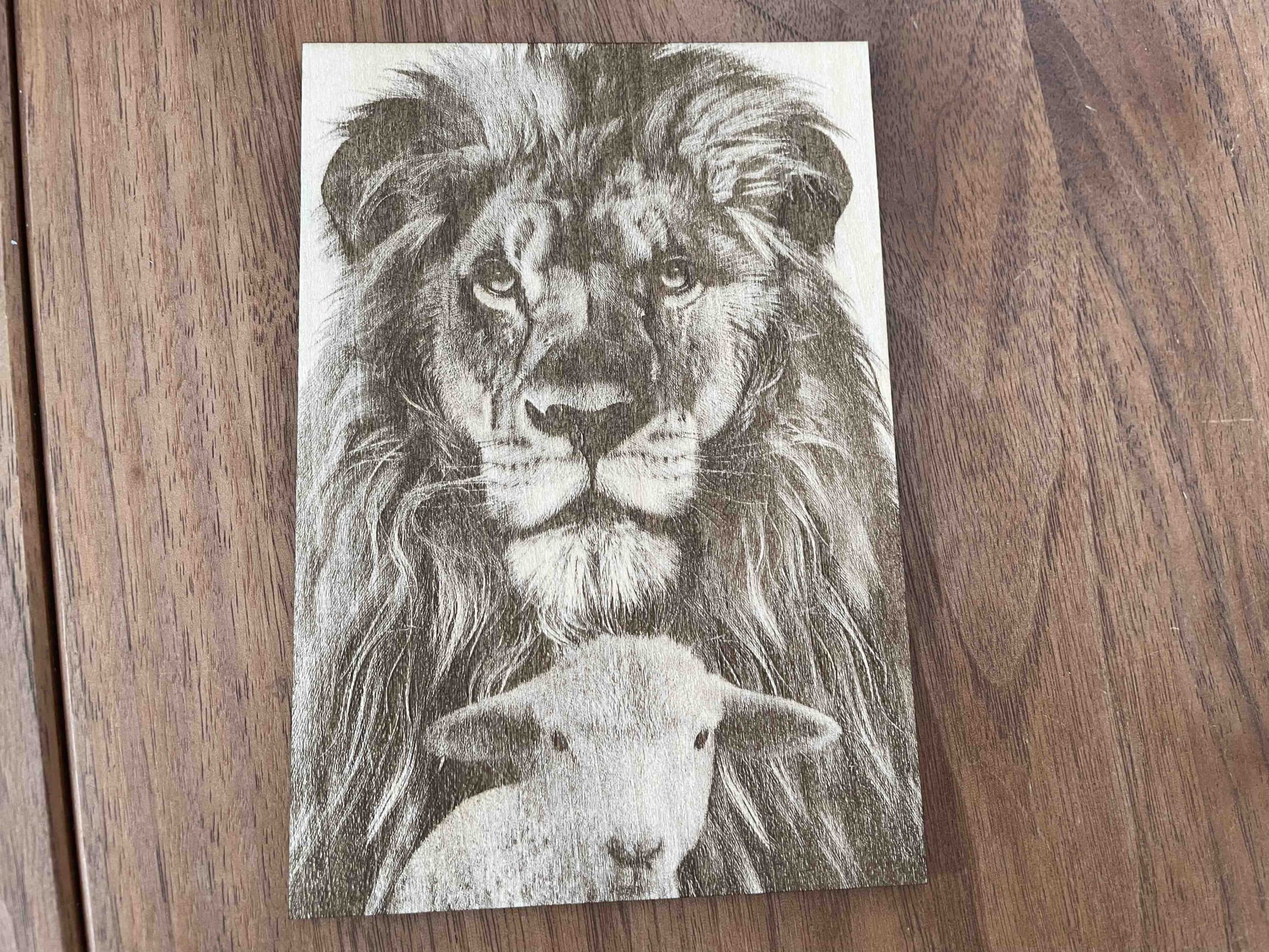 Ob das am Laser oder den Eigenheiten des Holzes lag, weiß ich jedoch nicht. Fest steht, dass das Endergebnis sich wirklich sehen lassen konnte. Insbesondere die Genauigkeit hat mich hier wirklich beeindruckt. So wurden selbst feinste Linien von Schaf und Löwe extrem klar auf das Holz gezaubert.