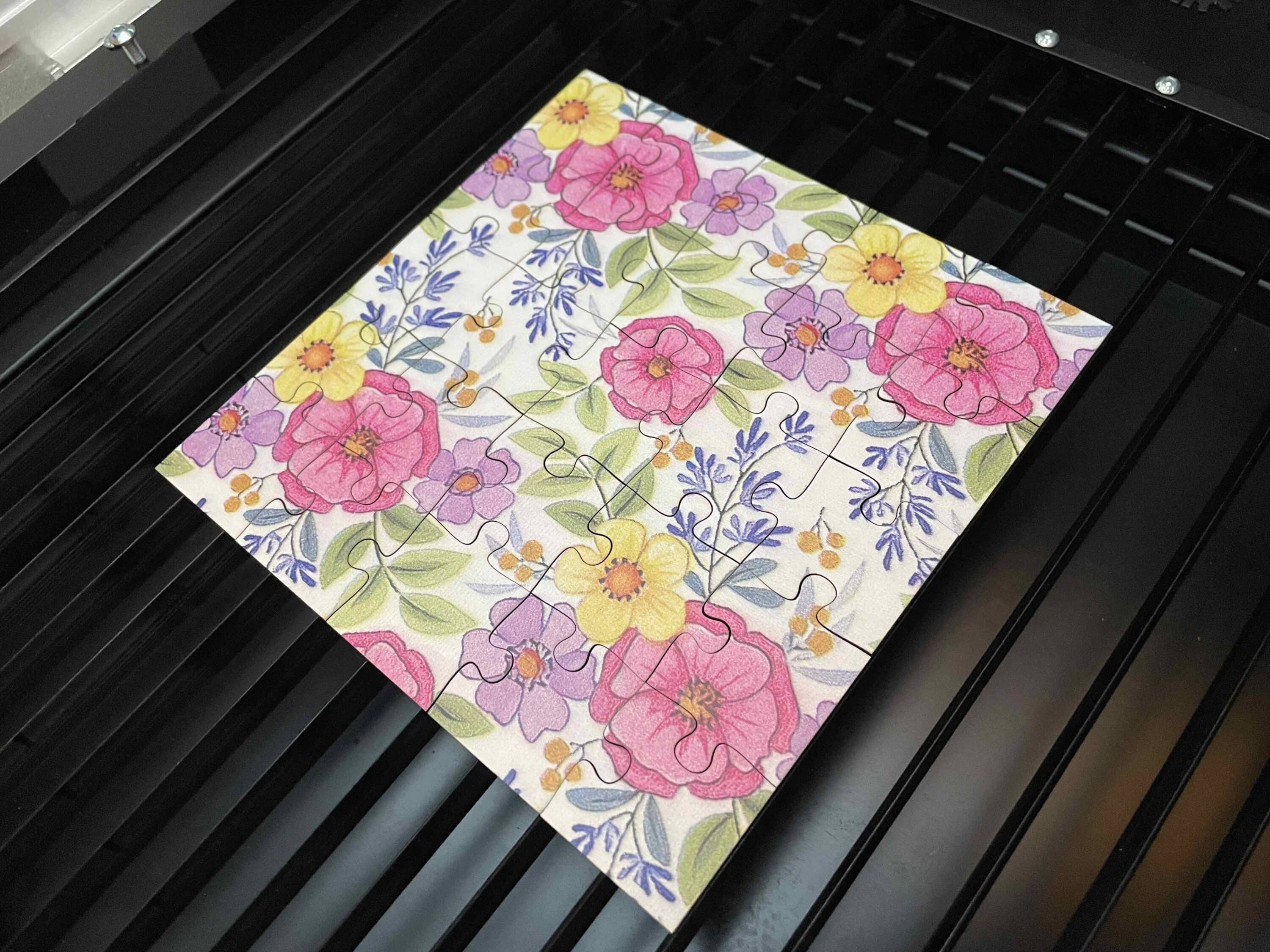 Für unseren Test ließ uns WeCreat auch einige farbenfrohe Holzpaneele zukommen. Mit von der Partie waren auch Modelle mit wirklich schickem Design. Dementsprechend ließ ich mich dazu hinreißen aus einem ein Puzzle zu erstellen. Hierfür steht in der Software ein spezieller Puzzle-Generator zur Verfügung. Besonders gut kann ich mir das auch für Familienfotos vorstellen.
