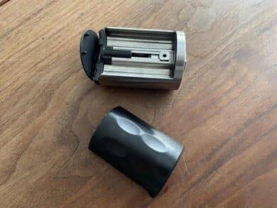 Im Anschluss findet der Zylinder des WELOCK Touch61 in der Aussparung Platz. Dabei steht es einem wie gesagt offen, von welcher Seite man den Zylinder einsetzen möchte. Nachdem man in den Knauf mit Fingerabdrucksensor die passenden Batterien eingesetzt hat, werden die beiden Knäufe raufgeschraubt.