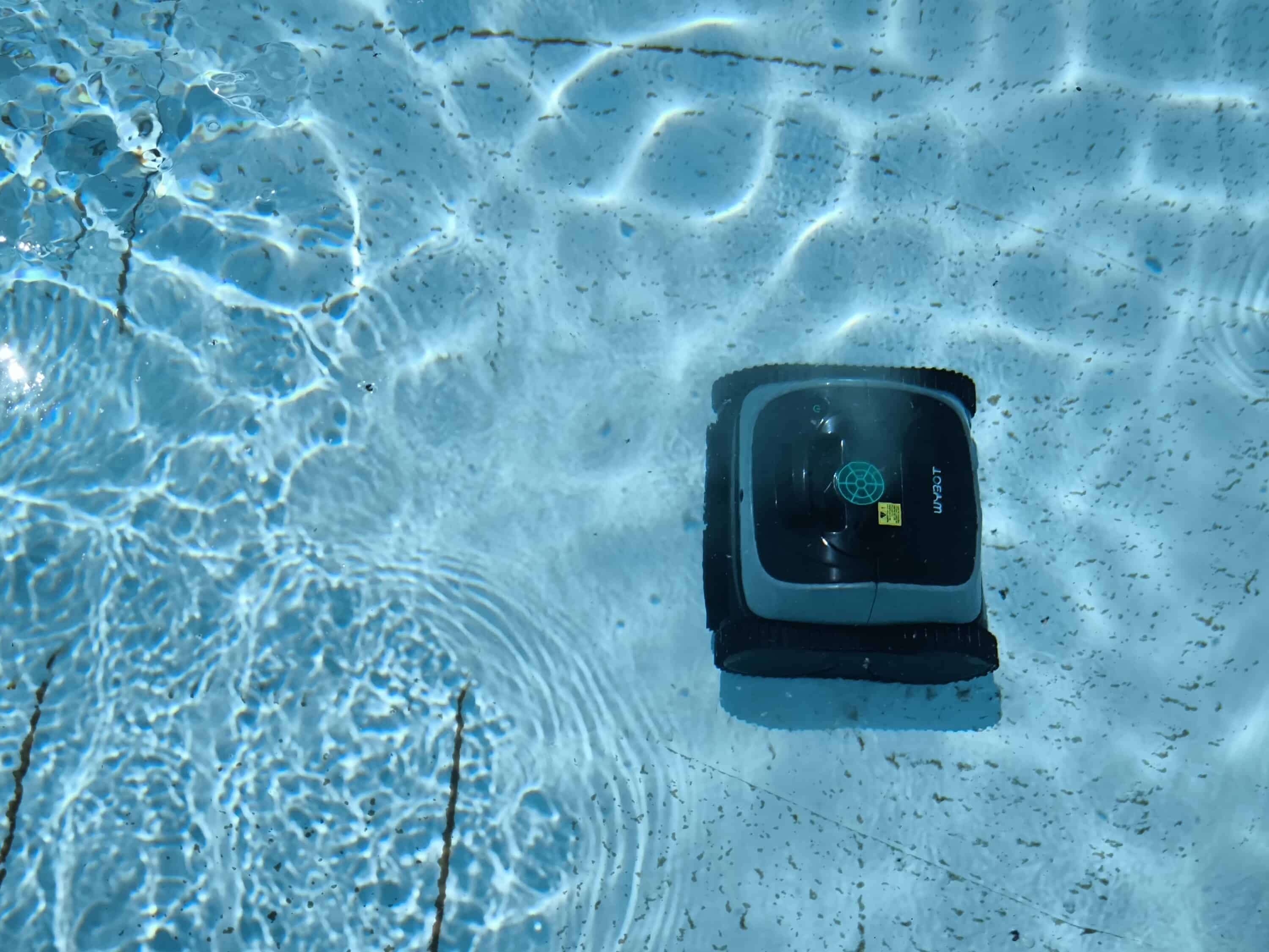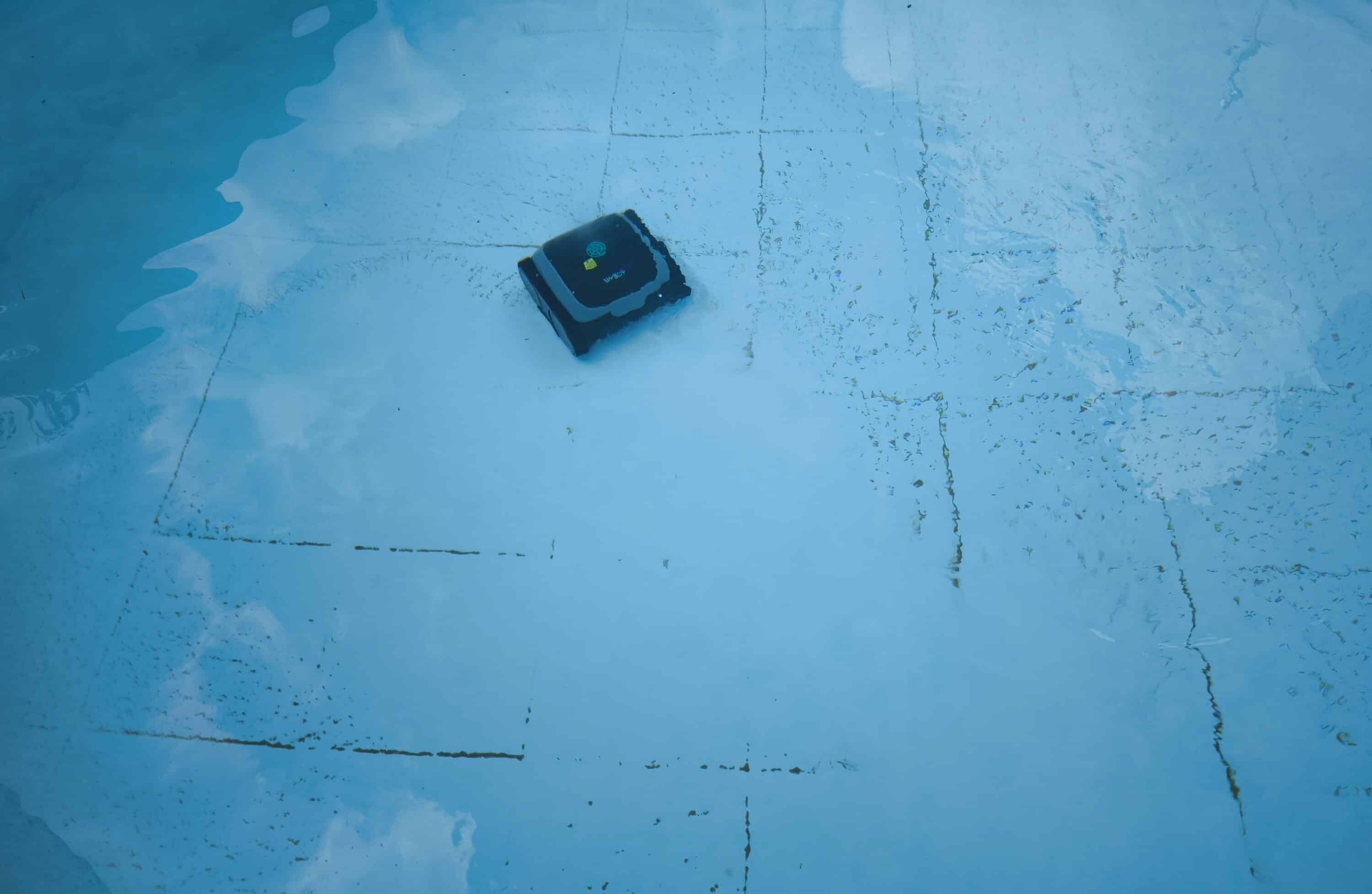 Was die Schmutzausbeute auf dem Boden betrifft, so ist diese in unserem Pool, der zuvor eine Woche lang nicht gereinigt wurde, recht ordentlich. Der WYBOT C1 fährt seine Linien in einem konstanten Rhythmus ab, während die Geschwindigkeit zur Fortbewegung ebenfalls gut ausfällt. Dabei ist der Roboter keineswegs langsam und glücklicherweise auch nicht zu schnell unterwegs. Das hat zur Folge, dass alle möglichen Partikel während des Reinigungsvorgangs nicht um den WYBOT C1 herumgewirbelt werden, sondern sorgfältig von den Bürsten eingesogen werden.