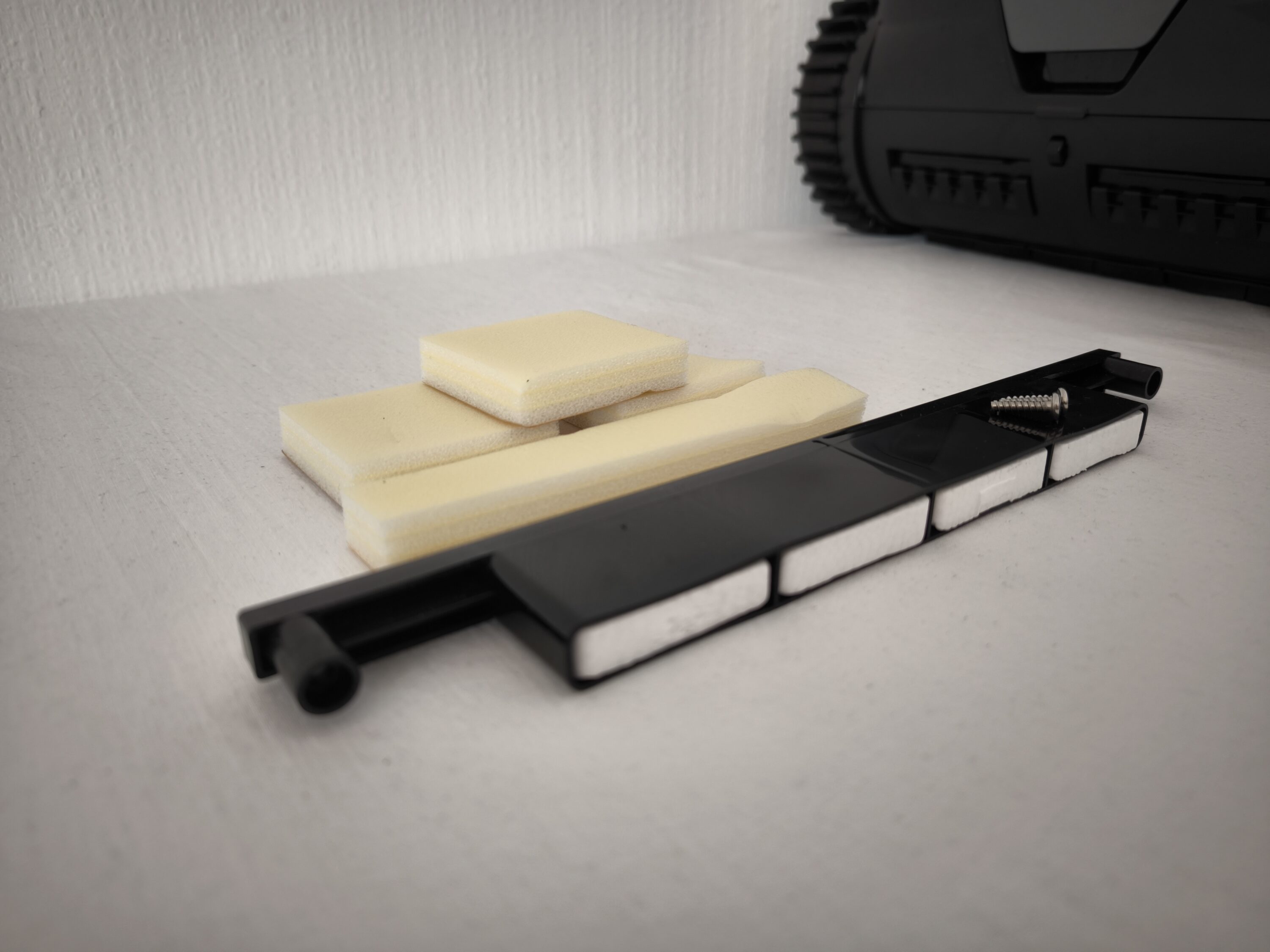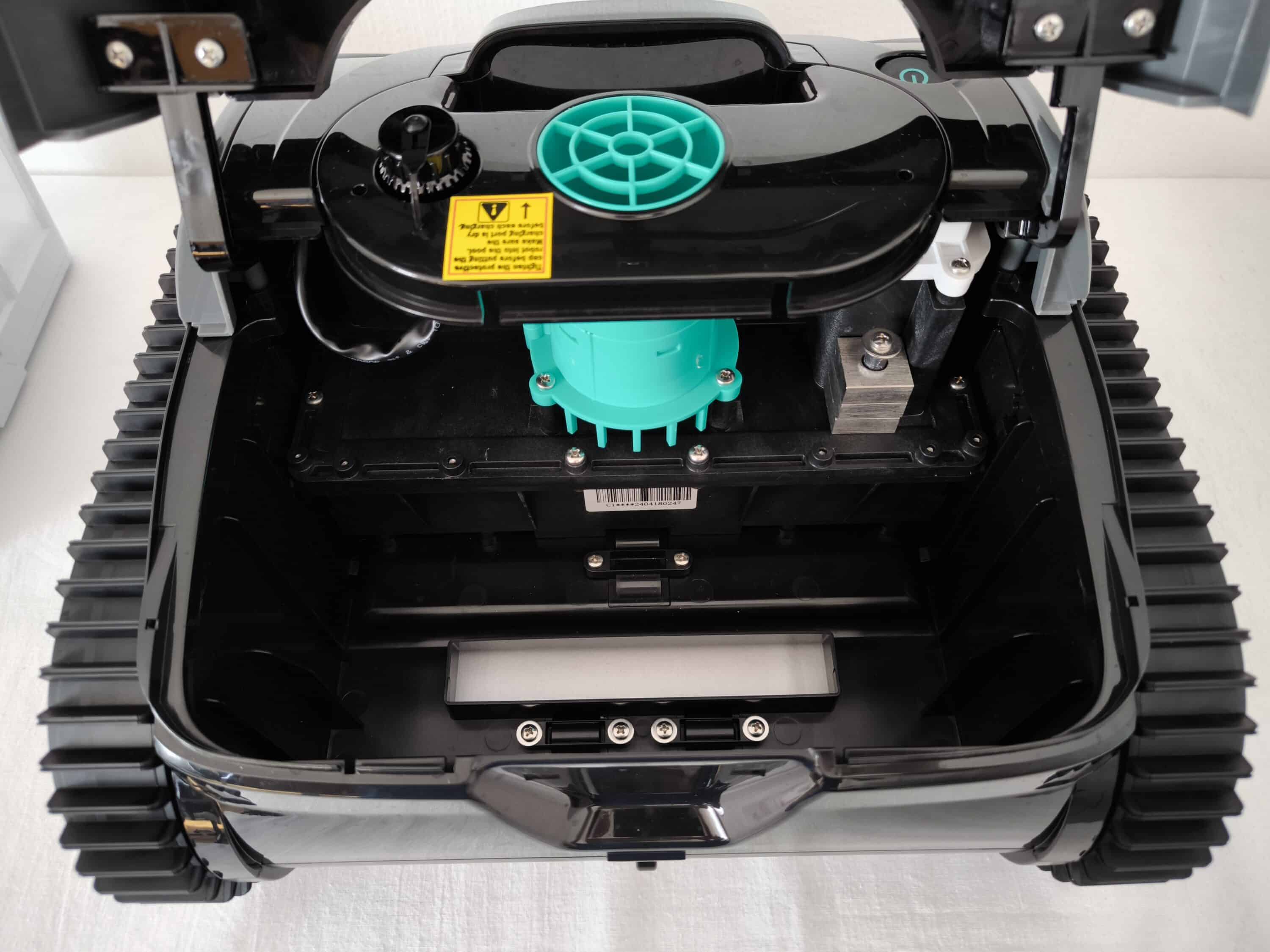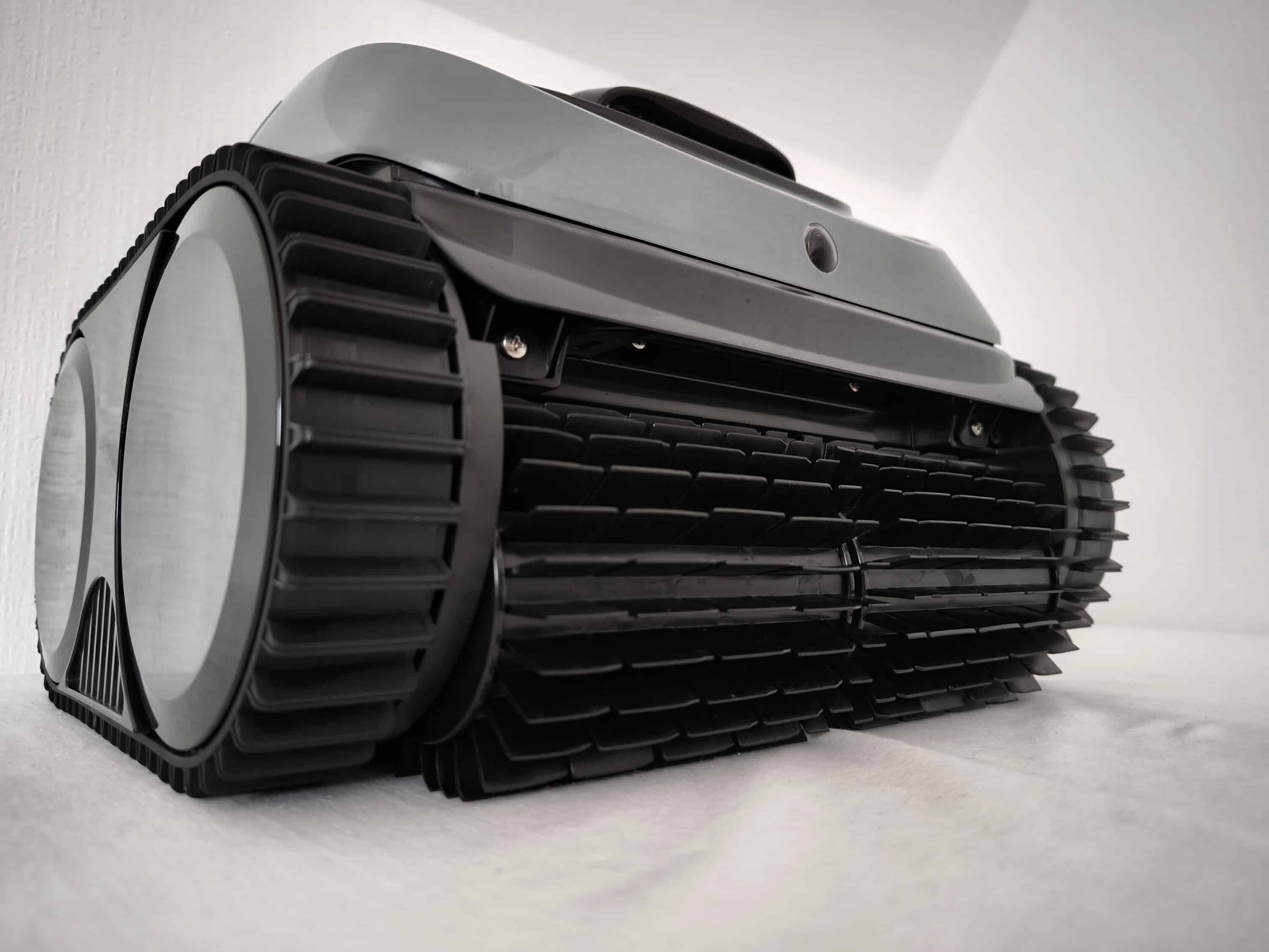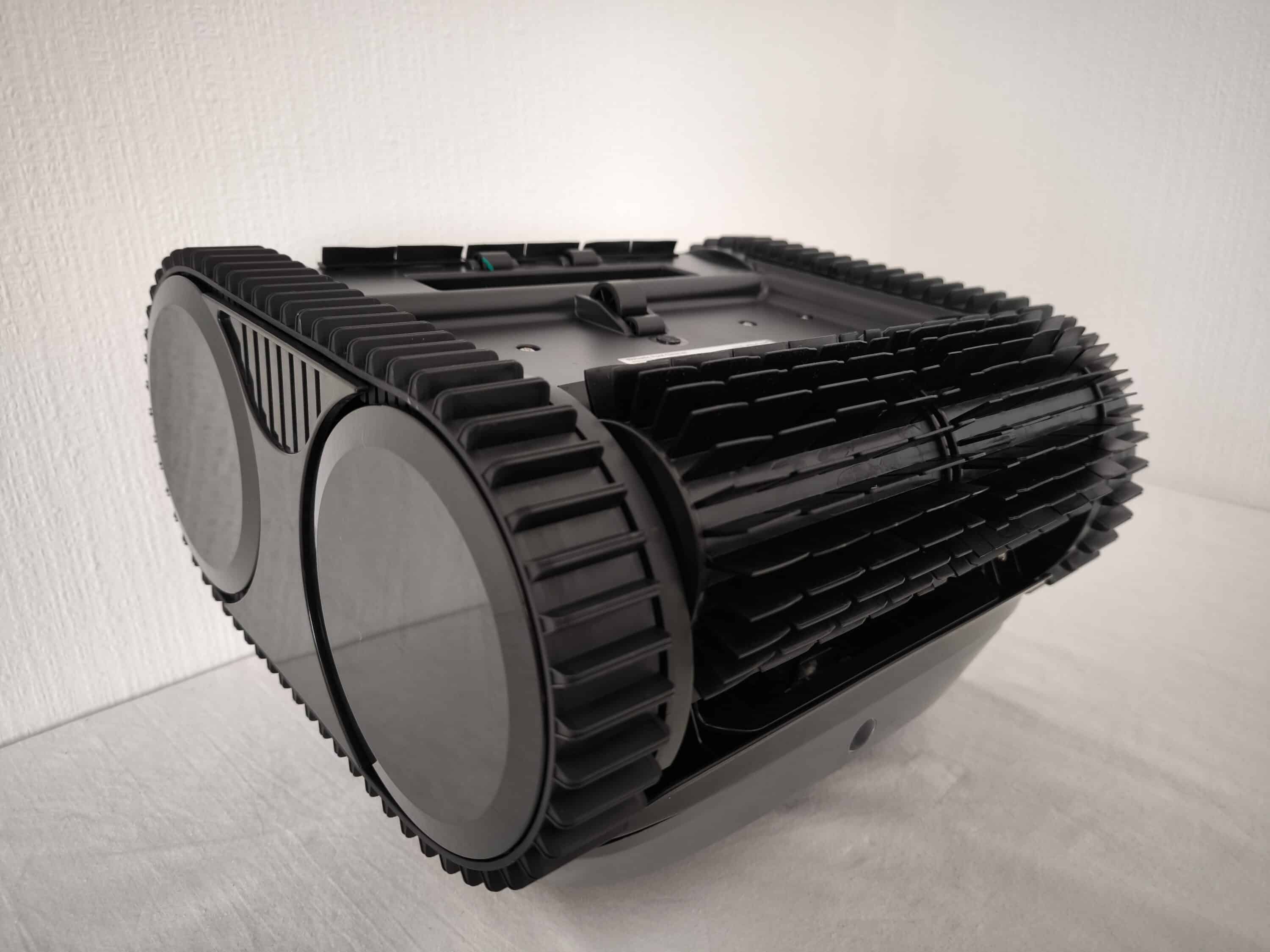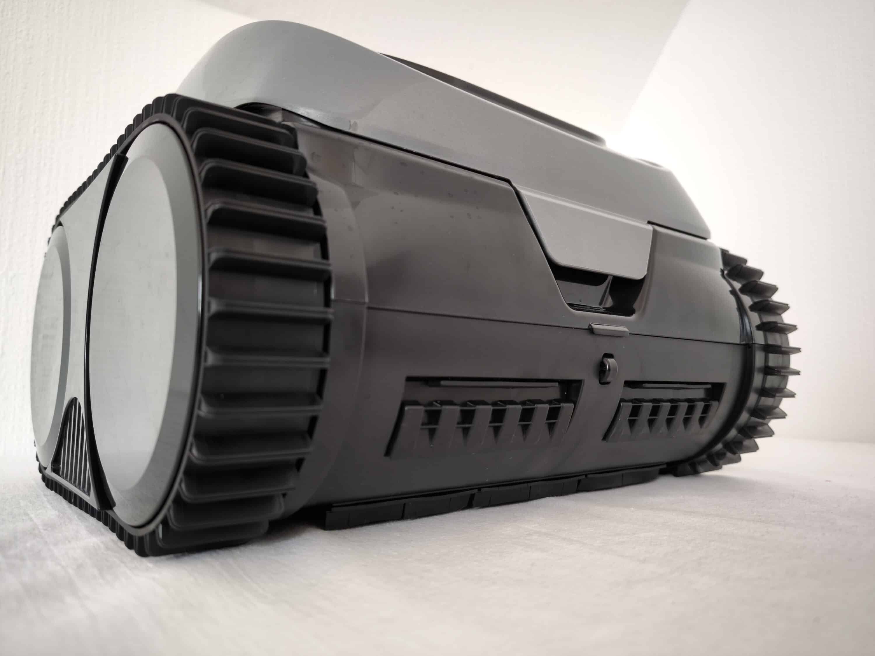 Bezüglich der Verarbeitung kann gesagt werden, dass diese beim WYBOT C1 dem Preis angemessen ist. Die Walzenbürsten machen einen ordentlichen Eindruck und auch die Laufrollen sind in einer Reihe fest montiert. Auch die Räder haben kein Spiel und laufen in einer Spur. Lediglich die Oberseite des Roboters lässt Optimierungswünsche offen. Hier ist der Druckpunkt des Tasters doch ein bisschen merkwürdig und auch der Öffnungs- und Schließmechanismus ist zu schwerfällig.
