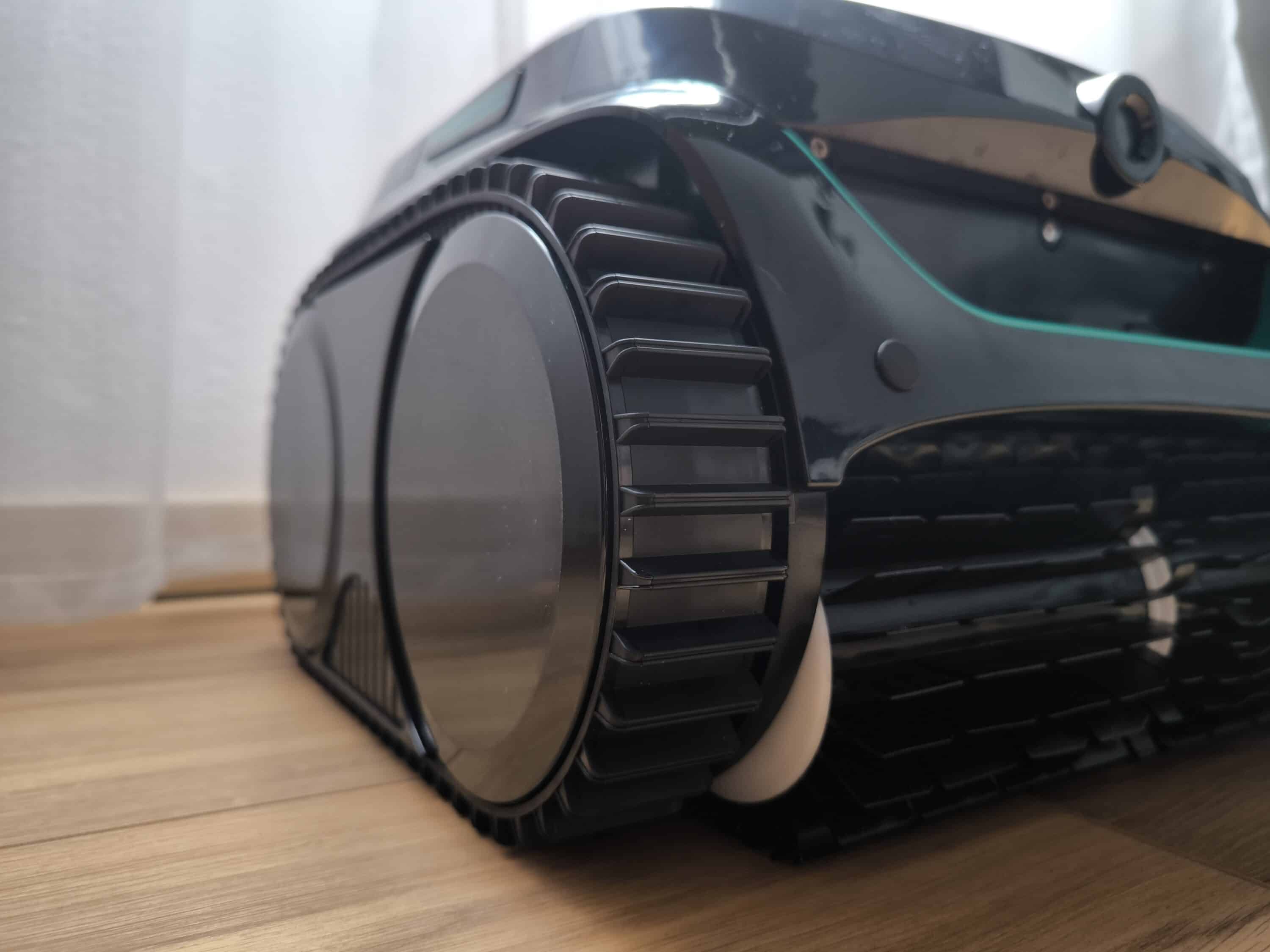 Bereits beim C1 hat uns das Testergebnis ohne Einschränkungen gefallen – dasselbe gilt für das Nachfolgermodell WYBOT C2 Vision. Für die Fahrtrouten stehen insgesamt drei Varianten zur Verfügung: das H-, N- und V-Muster. In puncto Gründlichkeit schnitt das N-Muster am besten ab, wohingegen das H-Muster ein etwas flotteres Tempo vorlegt. Zudem ist das gründliche Säubern der Wasserlinie bemerkenswert, wofür die groß dimensionierten Walzenbürsten maßgeblich verantwortlich sind. In dieser Hinsicht ragt die Bürste des Poolroboters weiter hinaus, wodurch selbst bei unterschiedlichen Wasserständen oder durch Wellen angereicherter Schmutz sicher beseitigt wird.
