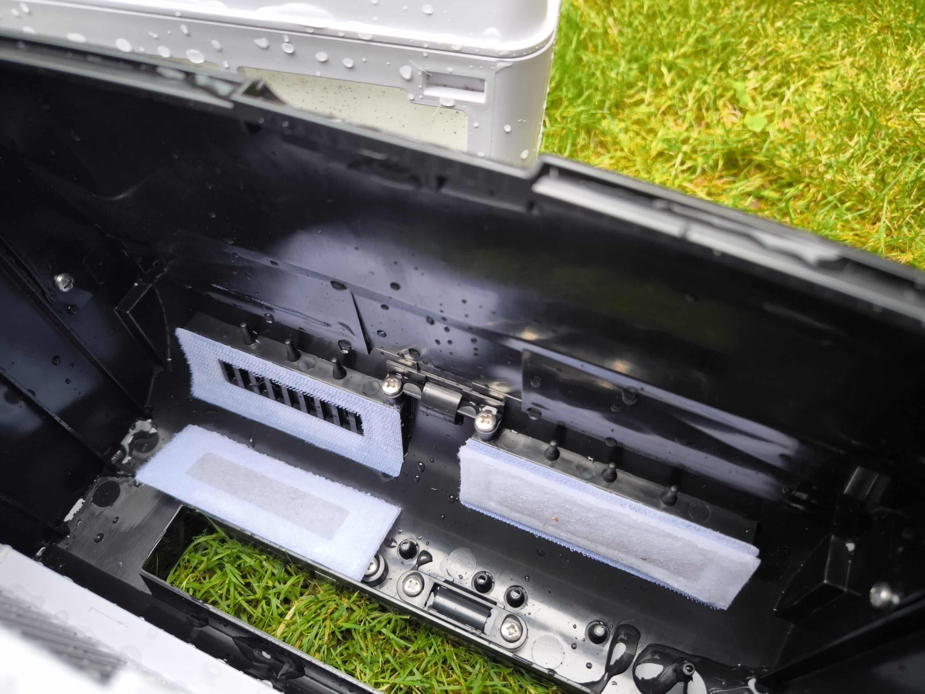 Nun gilt es, den Filterkorb gründlich mit dem Gartenschlauch auszuspülen und ihn anschließend in umgekehrter Reihenfolge wieder in den WYBOT C2 Vision einzusetzen. Bei Bedarf lässt sich auch gleich der Feinstaubfilter bzw. die weiteren Klettverschluss-Einsätze sauber machen. Zum Schluss den Gehäusedeckel wieder schließen, damit die nächste Reinigungstour gerne kommen kann. Insgesamt orientiert sich der WYBOT C2 Vision also stark am bisherigen Reinigungskonzept von Poolrobotern, welches sich seit Langem etabliert hat.