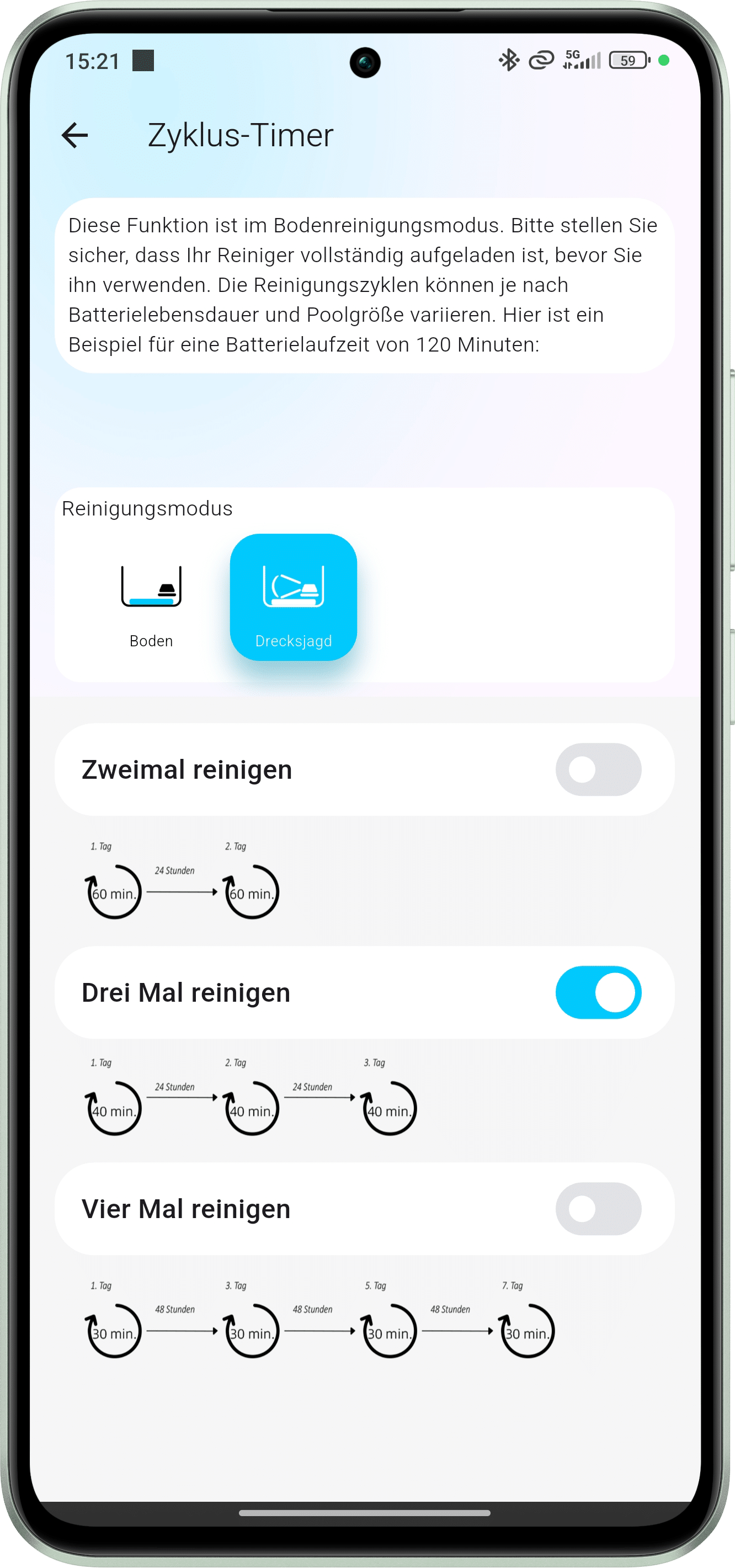 - Zyklustimer sorgt für eine mehrtätige Reinigung