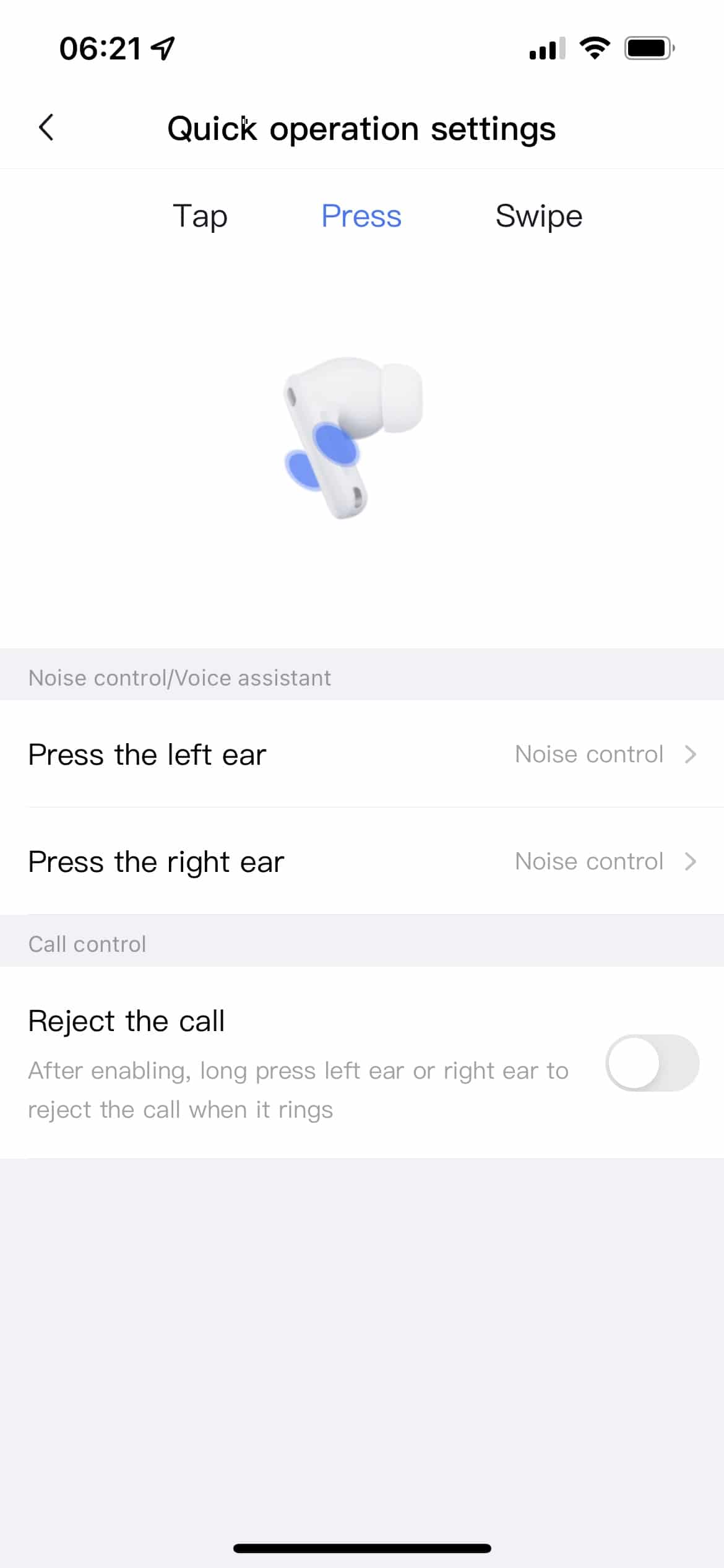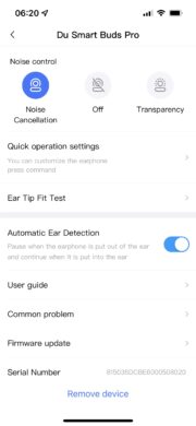 Darunter findet sich der praktische Ear Tip Passtest, sowie die Möglichkeit, die automatische Trageerkennung zu aktivieren, beziehungsweise auszuschalten. Einen Equalizer, Presets oder weitere Optionen sucht man innerhalb der App aber leider vergebens.
