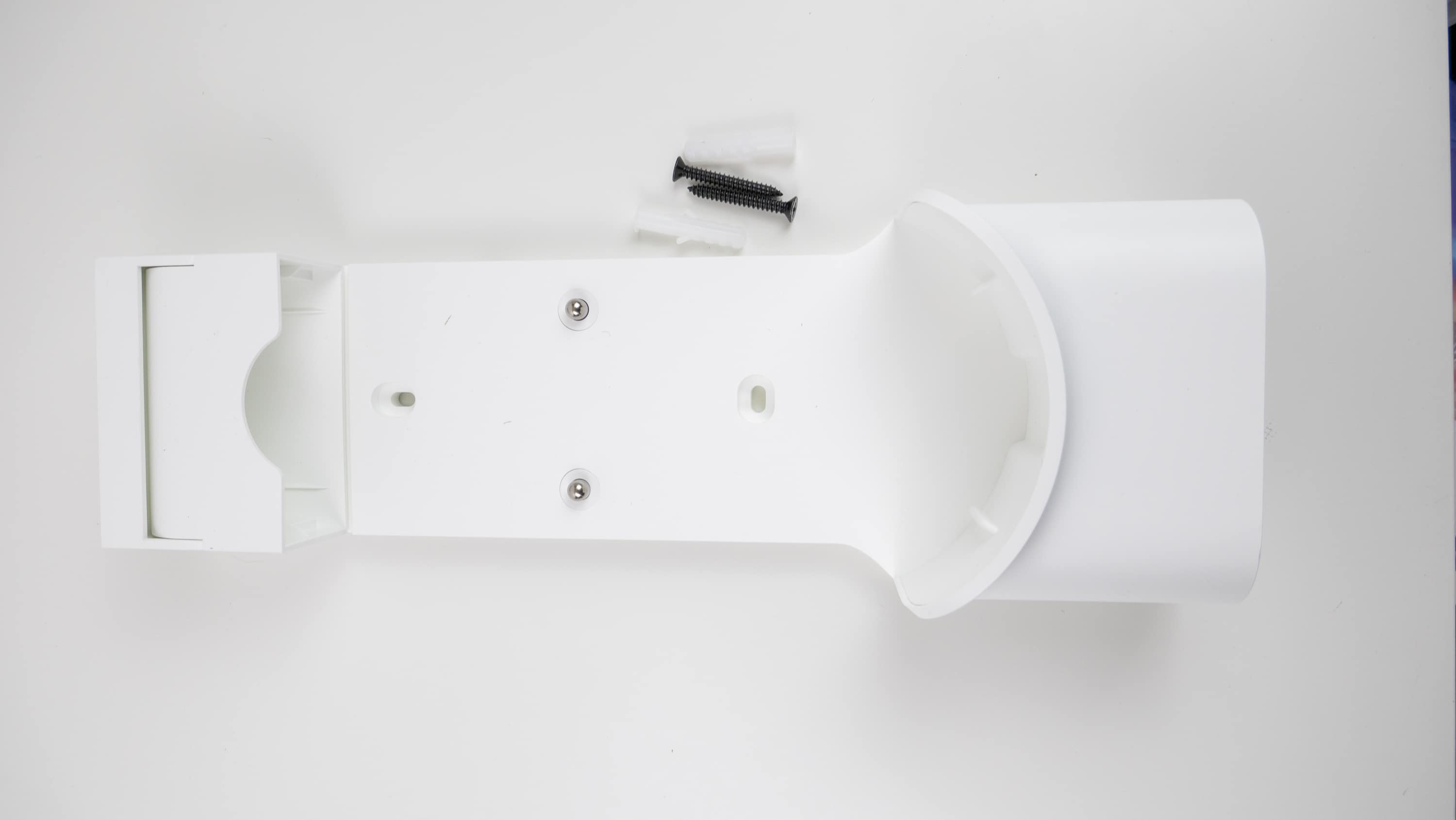 - die Aufbewahrungshalterung mitsamt zwei Schrauben und zwei Doppelklebestickern