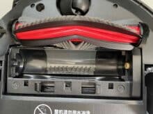 Weiterhin sitzt hier die Hauptbürste inklusive Zero-Tangle-Technologie. Ein praktischer Kamm kämmt Tierhaare oder ähnliches aus der Bürste heraus, damit diese sich gar nicht erst verheddern können. In Sachen Materialwertigkeit und Verarbeitungsqualität ist der Yeedi solide aufgestellt, doch Marken wie Roborock, Dreame oder andere haben hier nochmal deutlich die Nase vorne. Das verwendete Hartplastik fühlt sich nicht gerade hochwertig an. Auch rochen die Materialien beim Aufwärmen während der Heißlufttrocknung ein wenig unangenehm.