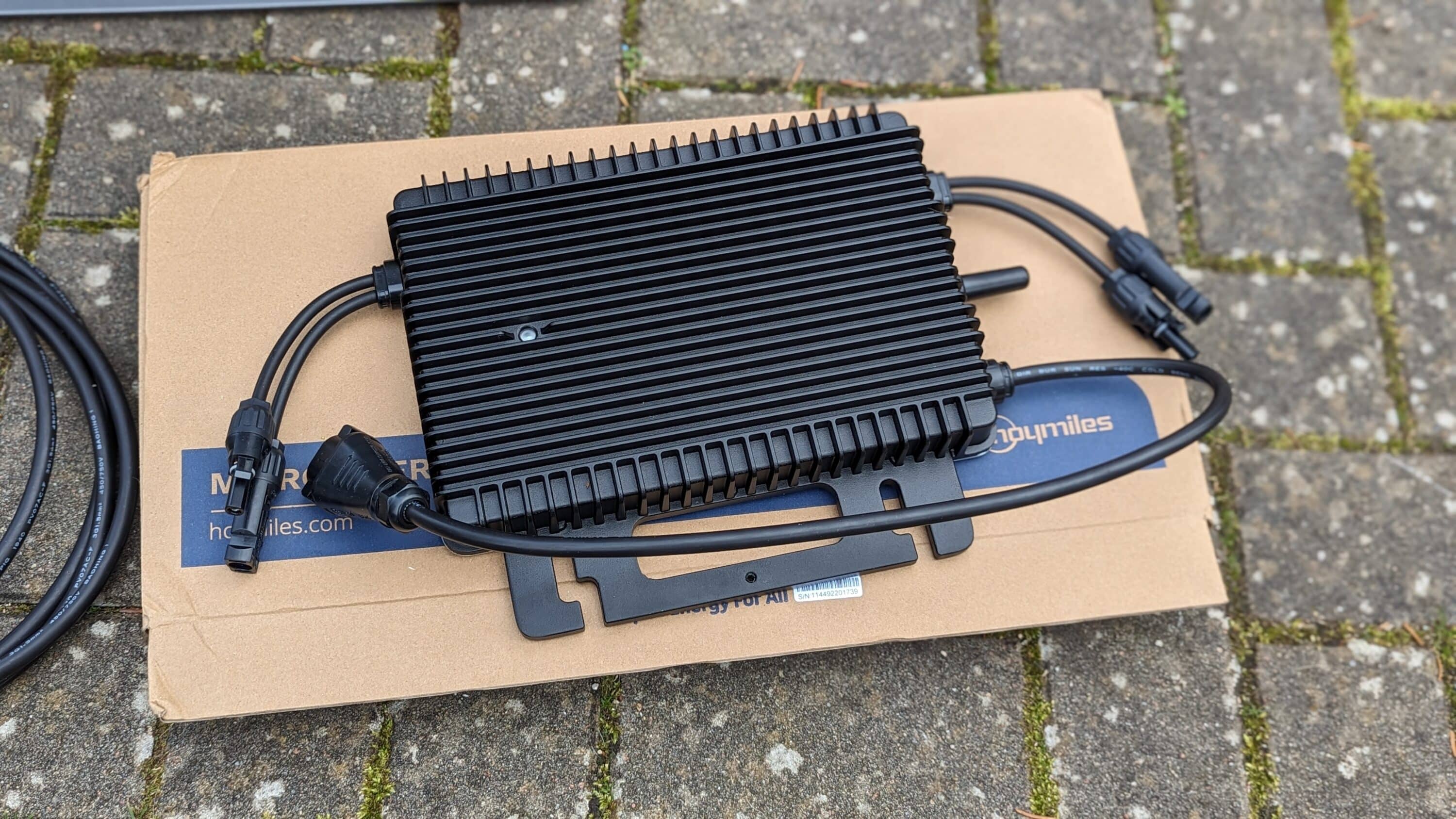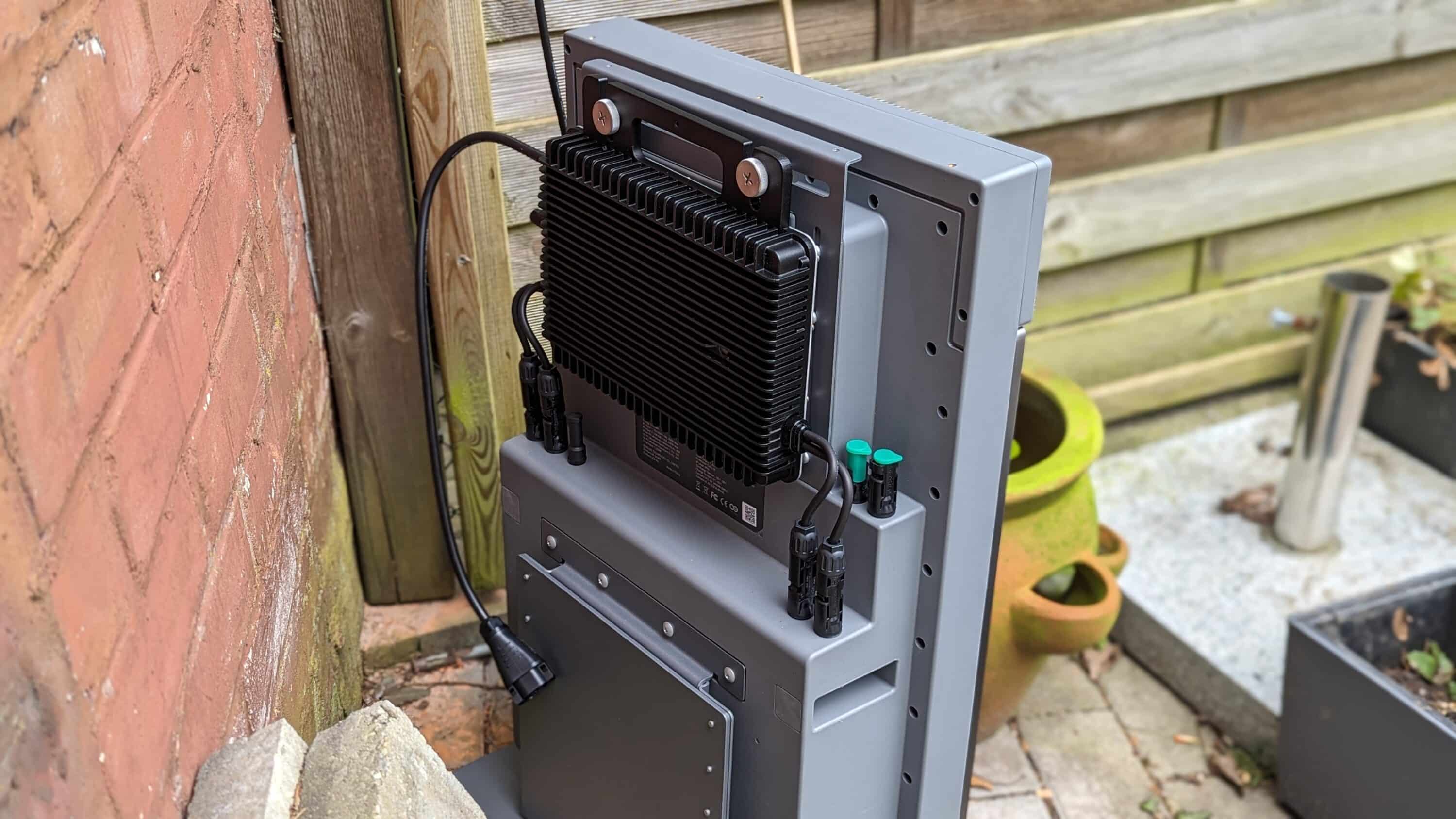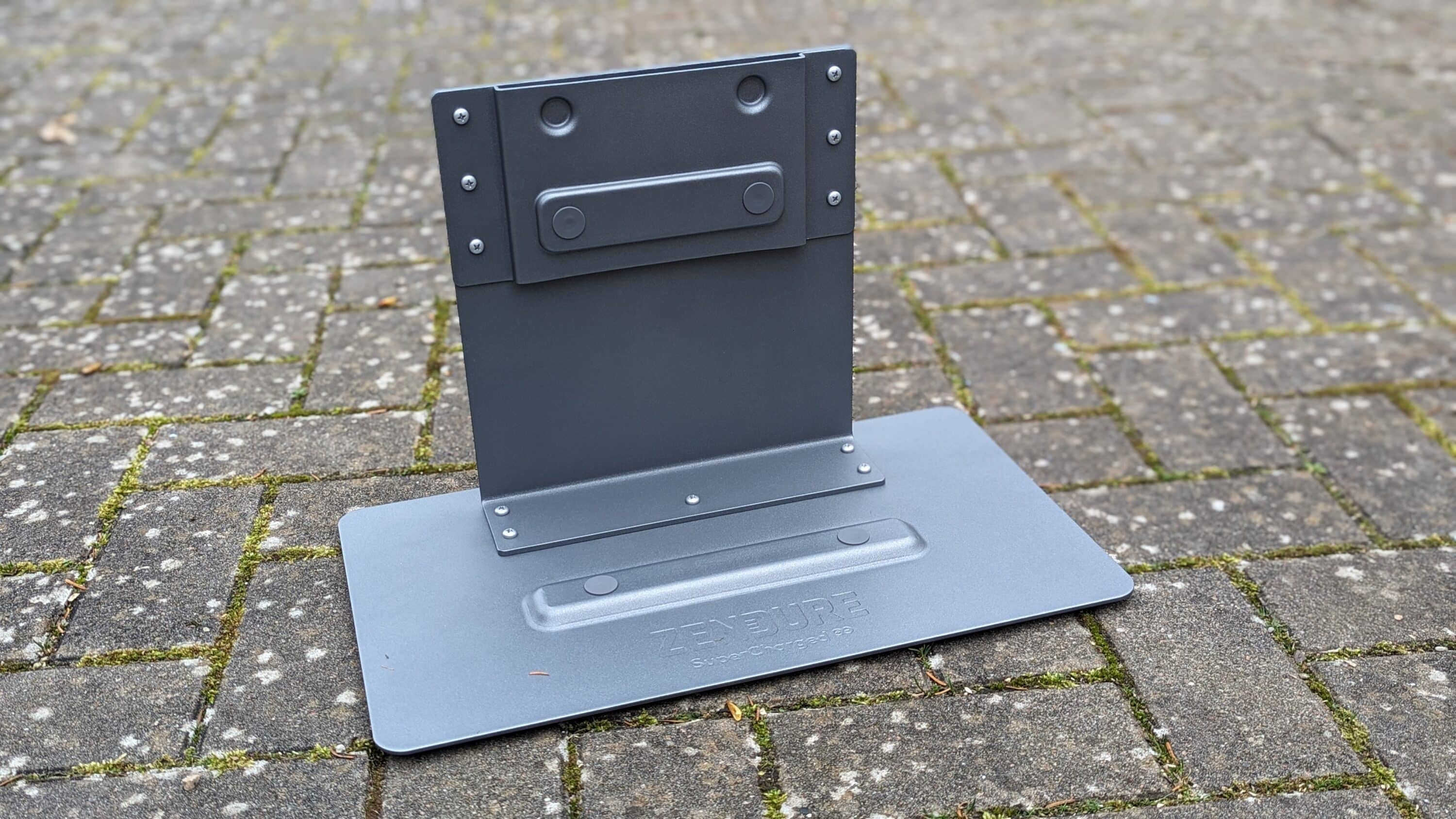 Auf Wunsch kann das Speichersystem direkt an einer Wand montiert werden, falls es jedoch aufgestellt werden soll, muss zunächst noch der zweiteilige Ständer zusammengebaut werden. Der Wechselrichter, im Gesamtpaket von Hoymiles, kann an der Rückseite verschraubt und dank Rändelschrauben auch in der Höhe angepasst werden, womit auch Wechselrichter anderer Hersteller problemlos Platz finden.