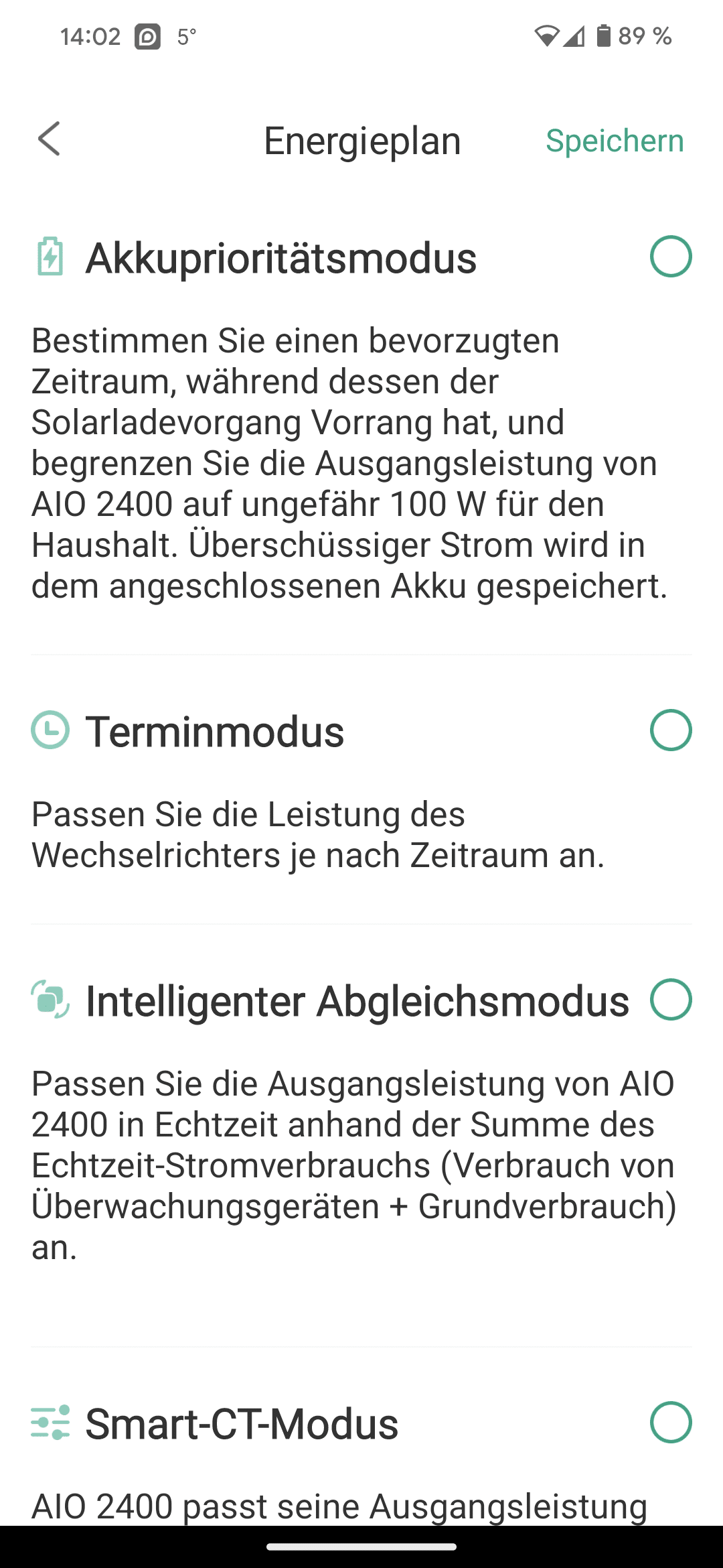 Alternativ stehen auch verschiedene intelligente Modi zur Wahl, die die Ausgangsleistung beispielsweise auf Basis des Stromverbrauchs in Echtzeit regulieren.