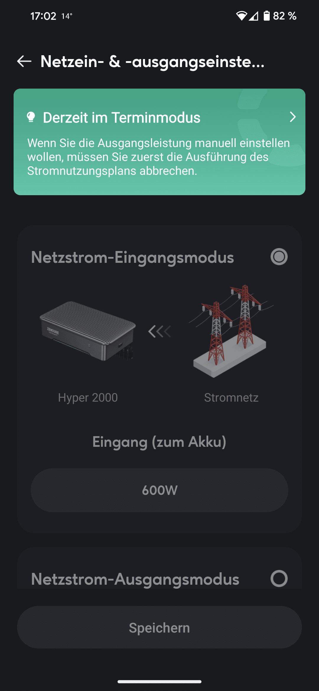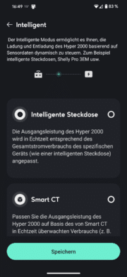 Zwischen 30 und 1.200W kannst du hier jeden Wattwert deiner Wahl festlegen. Doch das echte Highlight in der App ist meiner Meinung nach der neue intelligente Lademodus. Dieser orientiert sich bei der Ladestrategie an den gegenwärtigen Strompreisen. So lässt sich der selbst produzierte Solarstrom oder günstig aus dem Netz bezogene und im Akku gespeicherte Netzstrom dann nutzen, wenn der Strompreis gerade hoch ist.